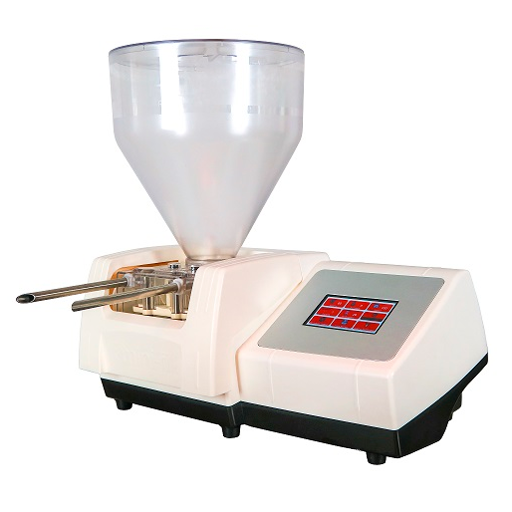 Die Gebäckfüll- und Dosiermaschine MINI-FILL ist eine elektrische Füll- und Dosiermaschine mit schnell wechselbaren Fülleinheiten (Trichtern) und Düsen. Sie eignet sich für die unterschiedlichsten Anwendungen in Bäckereien und Konditoreien, z. B. zum Füllen von Berlinern, Dosieren von Amerikanern oder Muffins und Dekorieren von Torten. Der Motorsockel ist in vier unterschiedlichen Ausführungen lieferbar: Motor 100W, Motor 260W, Motor 100W Pneumatisch und Motor 260W Pneumatisch. Die Geschwindigkeit der Zahnräder ist bei allen Motorsockeln stufenlos regelbar, dadurch kann das Gerät flexibel auf Produkte mit unterschiedlicher Viskosität eingestellt werden.